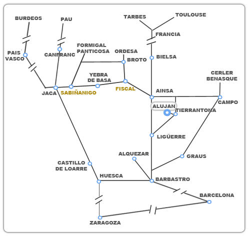 Grenzübergang und Jaca bis nach Sabiñánigo fahren. Von Sabiñánigo aus